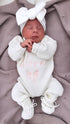 Our personalised blankets are made from soft 100% cotton. This beautiful blanket has a delicate boarder running around the two sides of the blanket edge.  Perfect for your little bubs or a thoughtful keepsake newborn baby gift.